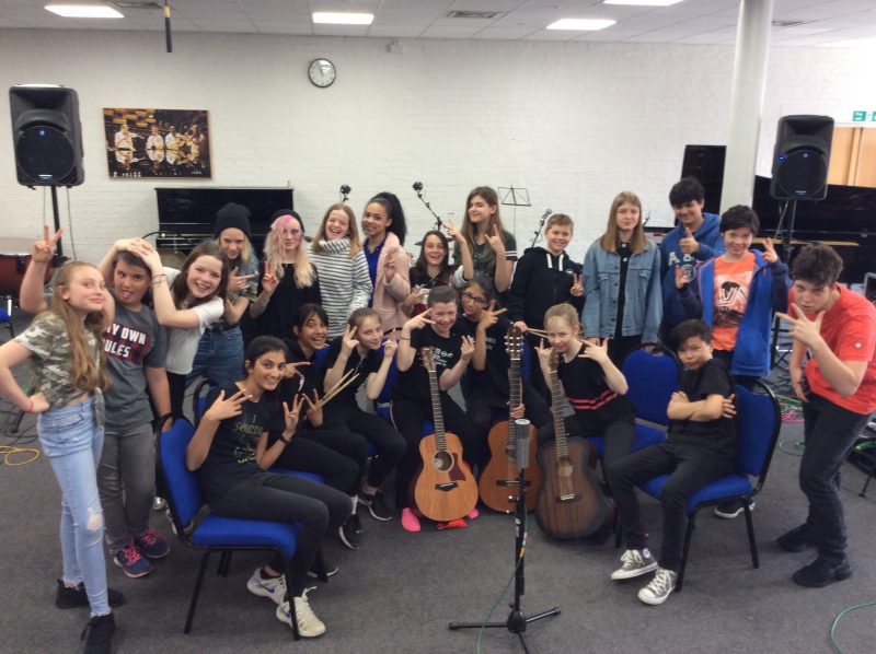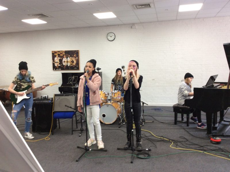 What a cool group to work with. Nearly half of the students on the Easter MyBand were doing the course for the first time, which was great to see. The sun was shining, and I had colleague, drummer Sam Blue, plus Conal working with me. I was delighted also to have Alleyns School student Zeph, come along and help out. The classic group tunes were, Don’t Stop, by Fleetwood Mac and I Still Haven’t Found What I’m Looking For, by U2. There were 4 bands. The dedication on getting tracks right was fantastic. It resulted in strong tunes and a great final performance.