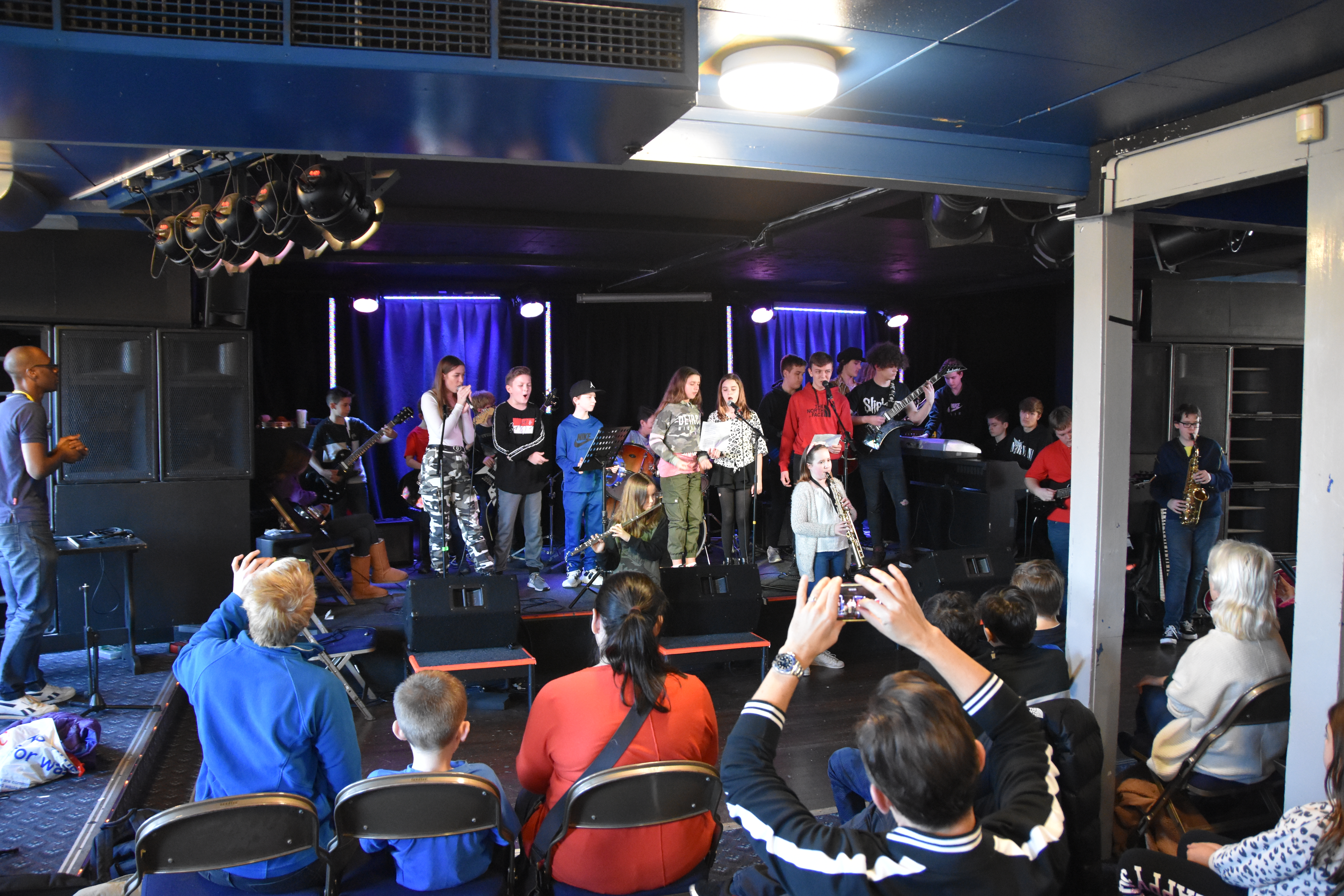 Our biggest MyBand to date. A logistical challenge, but fortunately we had the wonderful Katy Seath on hand to help with vocals and songwriting. It was the also the most diverse in variety of tunes. The quality was so high. Instrumental, classically influenced, Rock, pop, indie. It culminated with a packed, very packed, performance at the Hermit Club. Brilliant show. Big thanks to the Essex Music Club, the Becket Key C of E Music Depart and The Hermit Club.